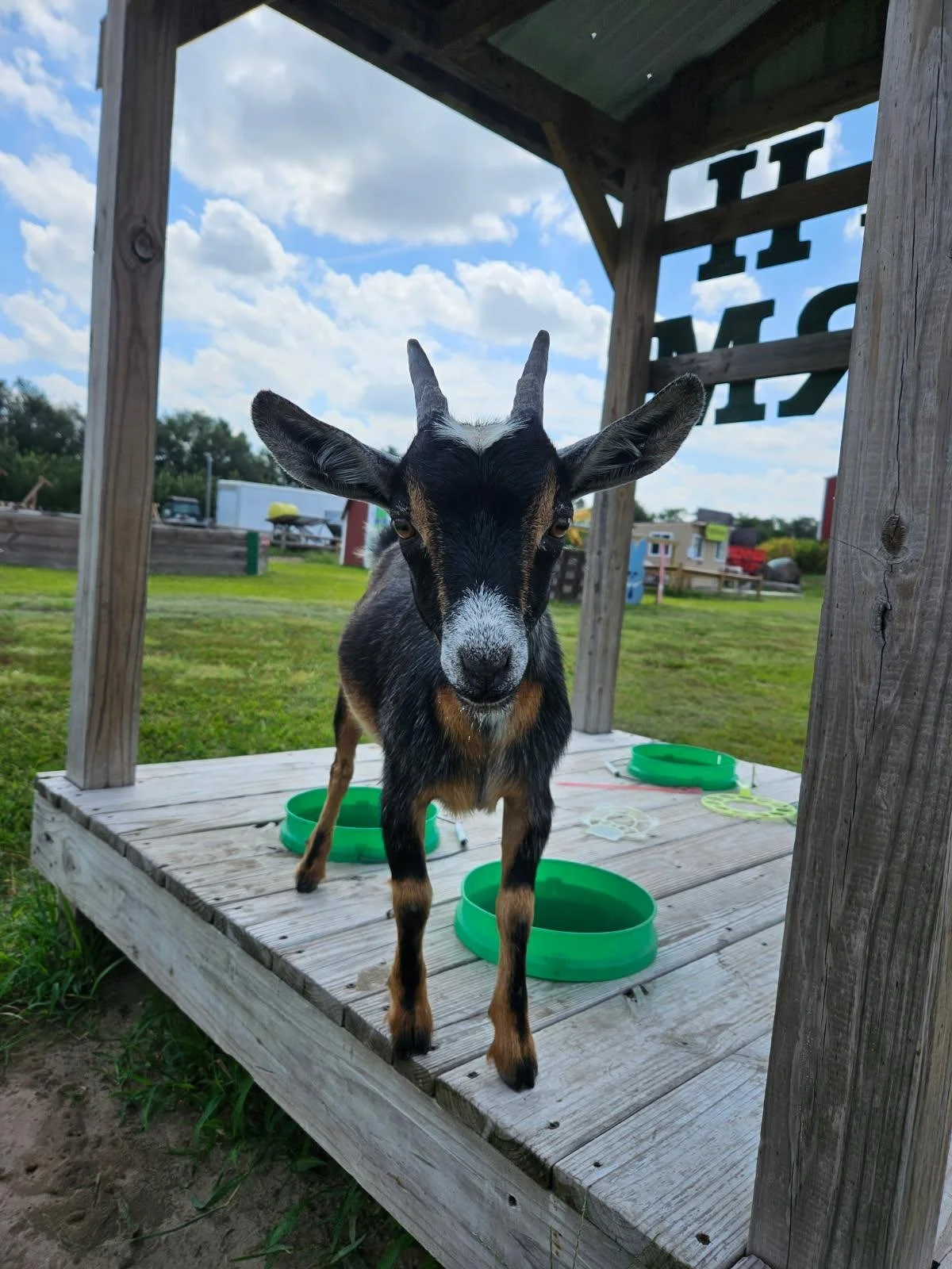 So many cuties! Many of our goats have even been featured at the Pottawatomie Fair. If you walk in with food, be prepared—you’ll be swarmed with goat love and attention. They can’t wait to meet you!
